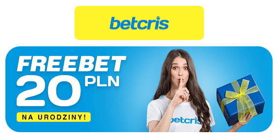 Urodzinowy prezent znajdziemy również w Betcris, gdzie na solenizantów czeka freebet w wysokości 20 PLN.