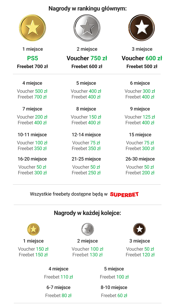 - Nagrody przyznawane są tylko w rankingu głównym [za cały sezon] i miesięcznym w podziale: