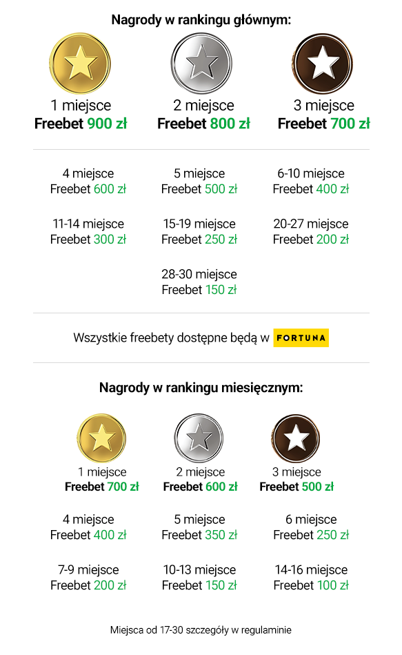 - Sponsorem freebetów jest Fortuna Zakłady Bukmacherskie Sp. z o.o.