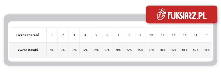 | Fuksiarz | Zwrot 3% stawki z każdego kuponu |