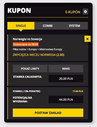 * Sporty wirtualne nie są zaliczane do obrotu wygraną z kuponu z mnożnikiem