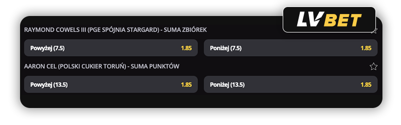 LVBET wyróżnia się na tle konkurencji przede wszystkim niezwykle szeroką ofertą zakładów na zawodników, które stanowią aż 2/3 całej oferty na koszykówkę. To świetna opcja dla graczy, którzy lubią typować indywidualne statystyki koszykarzy.