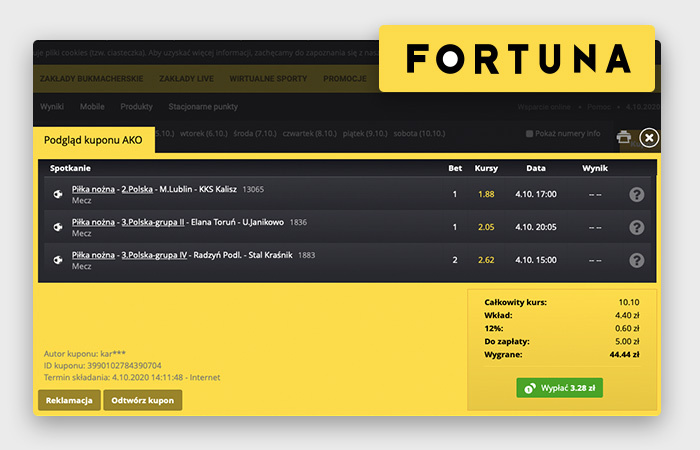 Najwięksi bukmacherzy w Polsce, a za takich uznaję Fortunę i STS, nie poświęcają uwagi najniższemu poziomowi rozgrywek. Jeśli chcesz obstawiać 4 ligę to polecam GO+bet, o którym pisałem wyżej oraz forBET. Jest to dwójka operatorów, która wypadła zdecydowanie najlepiej. Muszę też wspomnieć o Superbet, ponieważ jako jedyny posiada promocję dla tej ligi, ale oferta tego bukmachera nie jest tak rozbudowana, jak w przypadku GObet czy forBET.