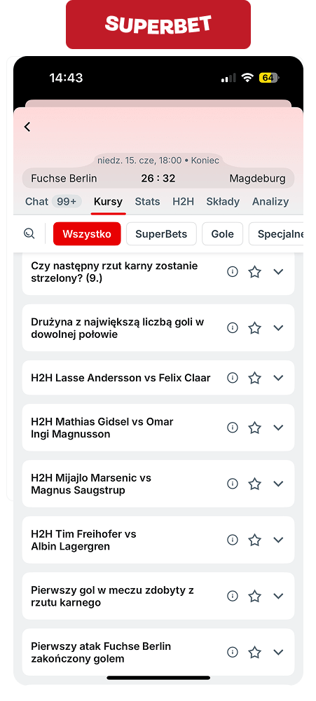 Po zakończeniu sezonu 2024/25 w czołówych europejskich ligach bukmacherzy zwykle mocno ograniczają dostępne rynki handballowe. Nie w Superbet.