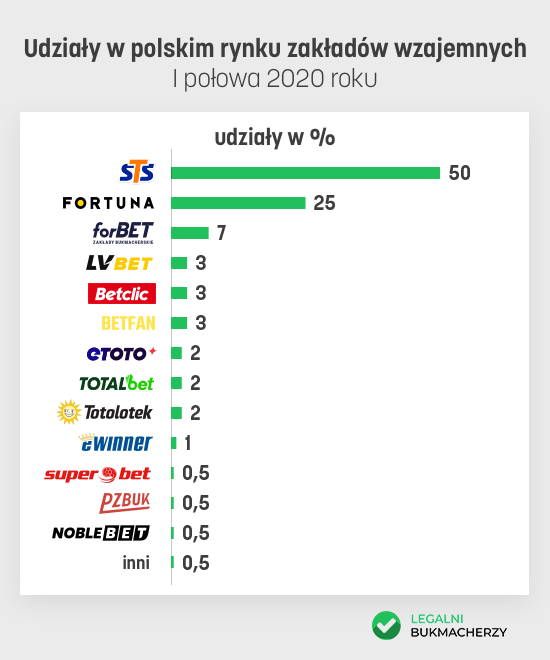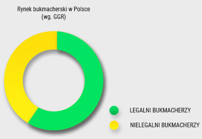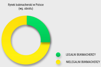 W 2017 roku legalni bukmacherzy obsługiwali jedynie 10% polskiego rynku wg. obrotu oraz 30% wg. GGR – obrotu pomniejszonego o wypłaty z wygranych. W 2018 roku – według badań Stowarzyszenia Graj Legalnie – obrót wzrósł do 60%, a udziały w rynku do 25%.