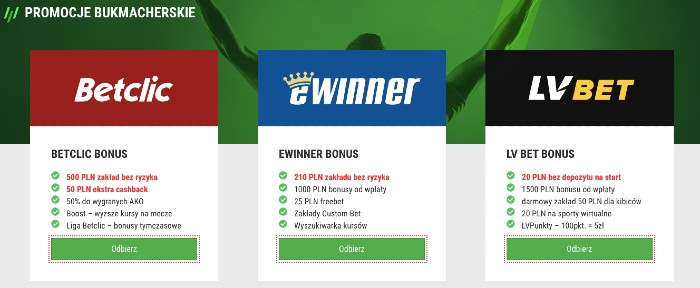 - Darmowe bonusy bukmacherskie na start