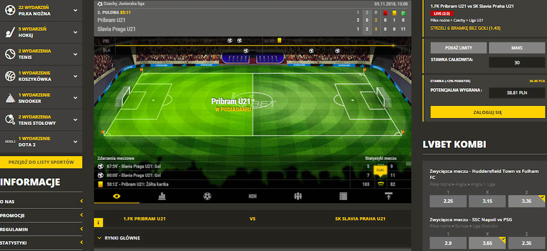 Podczas trwania najważniejszych meczów jak chociażby Liga Mistrzów, bukmacher udostępnia ofertę zakładów na żywo na celne strzały czy liczbę fauli.