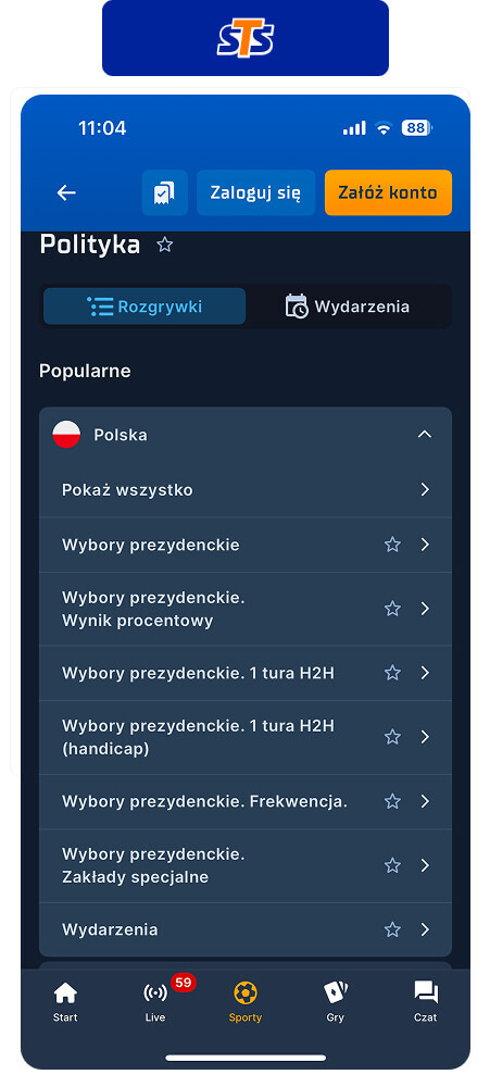 Świetnie wypadła również oferta „Polityka”. Zakłady w STS obejmują nie tylko wybory i najważniejsze wydarzenia polityczne w Polsce (np. kto będzie reprezentował Polskę na szczycie UE?), ale również szeroką gamę zakładów na wydarzenia polityczne w UE, USA i Wielkiej Brytanii. Nie brakuje również kursów na wybory w bardziej egzotycznych krajach (np. w Australii).